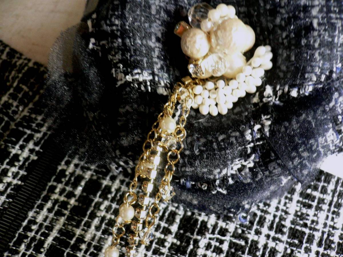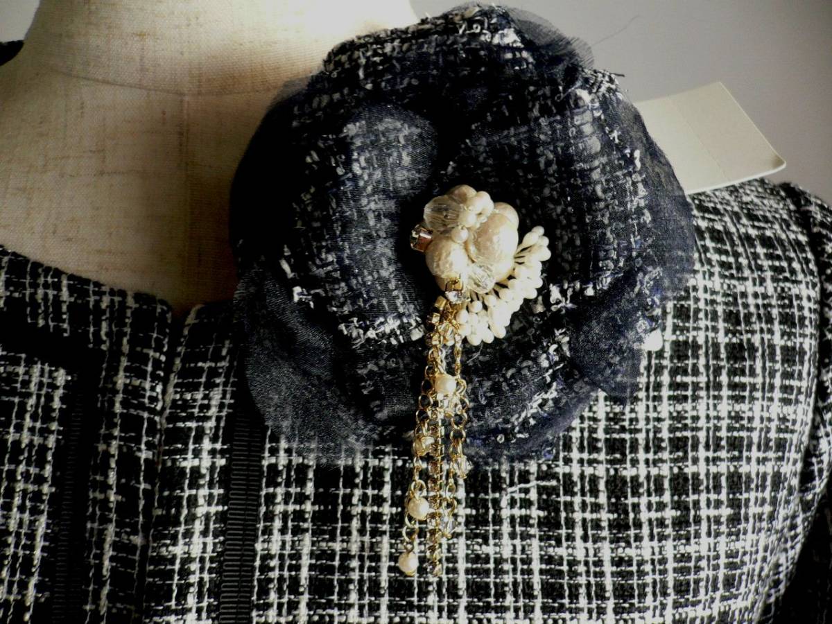 新品組曲濃紺ツイードパールラインストーンコサージュ卒業式入学式