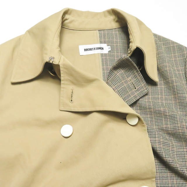 ROCKET X LUNCH ロケットランチ 18SS Check Trench Coat チェックトレンチコート RL181CT001 S ベージュ アシンメトリー ☆☆lc28095