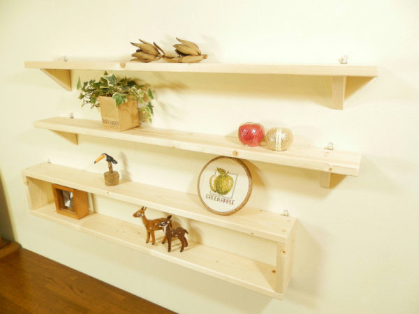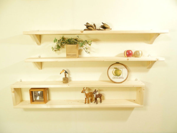 ハンドソーやハンマー、カンナなどの 古典的なツールを主に使用し制作しています。 なのでお届けする家具は 木目の模様が一つ一つすべて異なる一点もの。 塗料は安全を考慮し、 防腐作用のある日本産の製品を使用し、 長期に渡るご使用も想定して制作しています。 壁に取り付ける際にご使用いただく 吊り金具などの直接安全に関わる箇所には、 金具に付属する短いネジは使用せず、 長く頑丈な物に取り替えて棚本体に取り付けております。 商品は組み立て不要の完成品でお届けします。 |