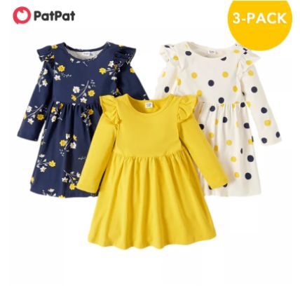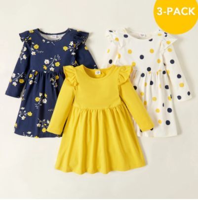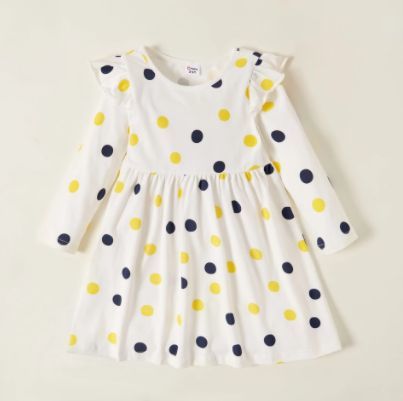 花と水玉の子供用ワンピース 3点セット 春秋用