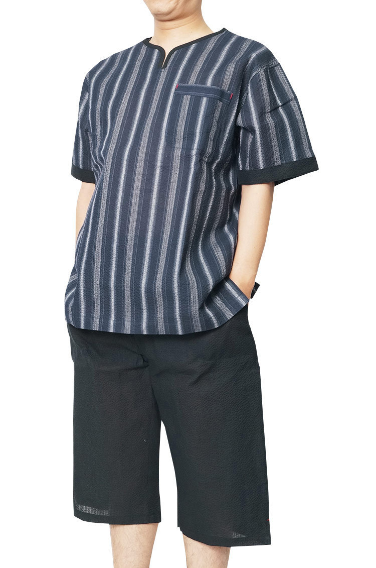 ■素材:素材綿80%麻20% ■取り扱い:家庭洗濯機OK ■上着 ポケット左前 ■ズボン 両サイド・ポケット右後ろ1・ ウエスト紐・ゴム調節 M:適応身長165~175 着丈73 胸囲88~96 ウエスト76~84 パンツ丈68 L:適応身長170~180 着丈77 胸囲96~104 ウエスト84~94 パンツ丈71 LL:適応身長175~185 着丈81 胸囲104~112 ウエスト94~104 パンツ丈73 3L:適応身長175~185 着丈85 胸囲108~118 ウエスト102~112 パンツ丈75 4L:適応身長175~185 着丈89 胸囲112~120 ウエスト110~120 パンツ丈77 5L:適応身長175~185 着丈93 胸囲116~124 ウエスト118~128 パンツ丈78