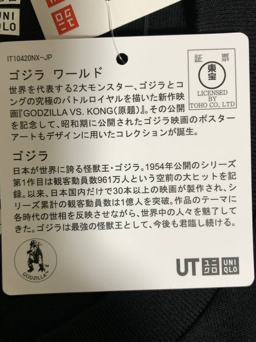 本品は、UNIQLOMEN ゴジラ ワールド UT グラフィックTシャツ(半袖・レギュラーフィット)(未着用品)1着になります。