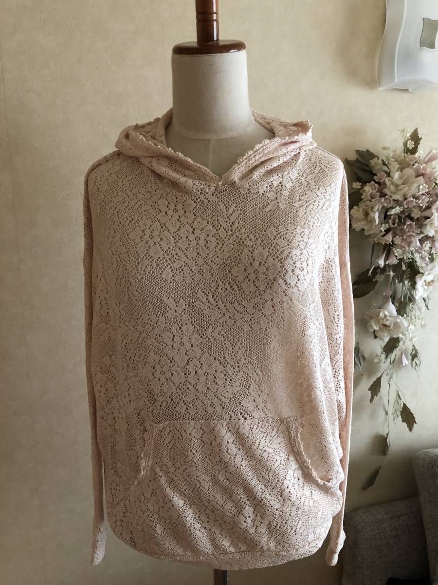 美品・earth music&ecology・レースパーカー・長袖・生成り色・600円