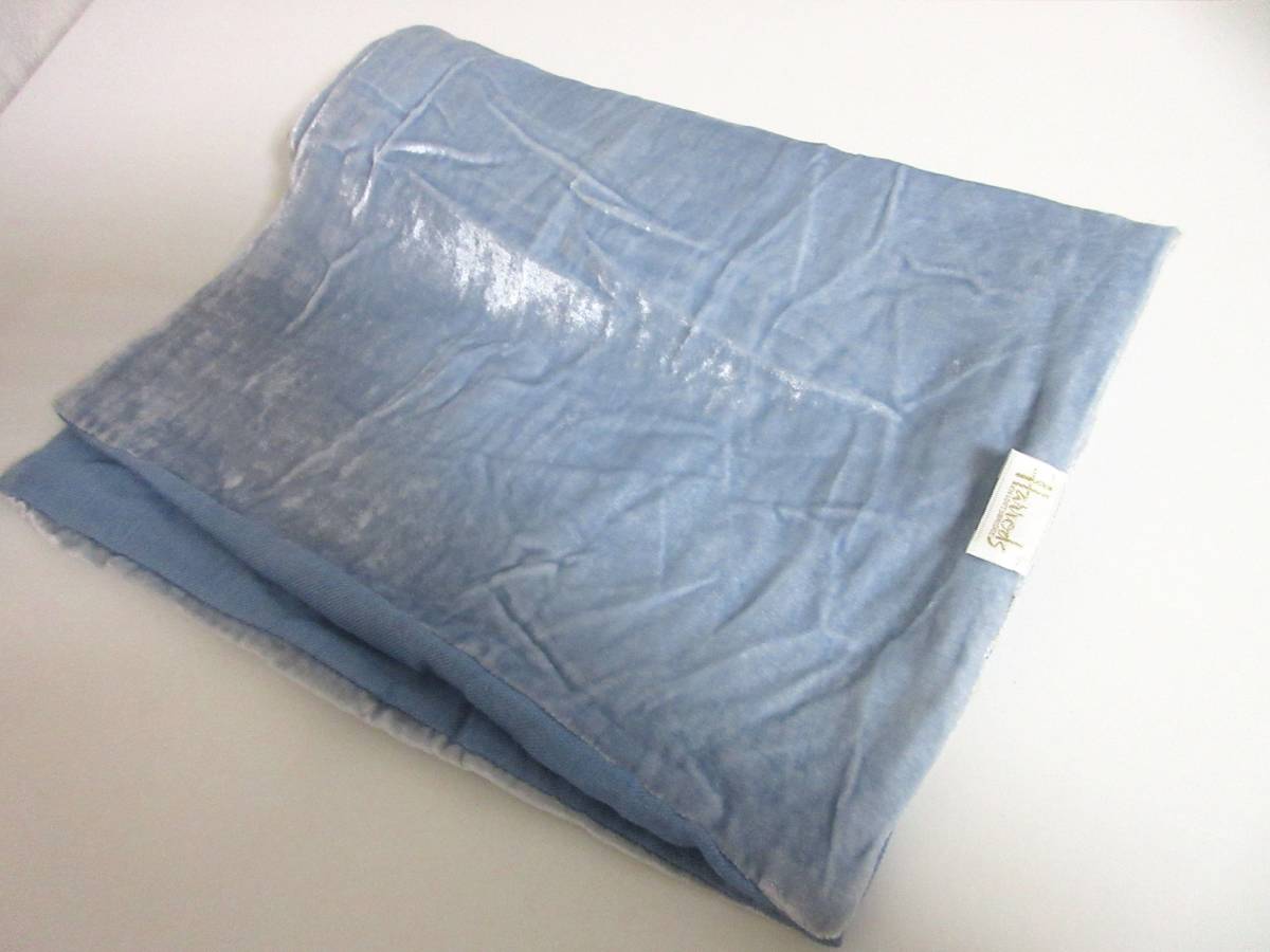 ハロッズ Harrods ベロア ストール 水色 亥322