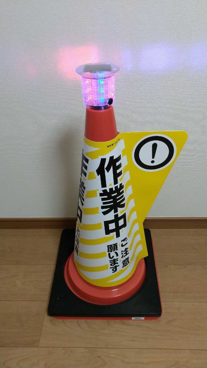 カットコーン(穴あきカラーコーン)にソーラー式赤青LED工事灯と作業中コーンカバー、さらにカラーコーンベース(2キロの重り)をセットしました。様々な場面で使用できると思います。未使用ですが、保管に伴うキズ・汚れはご了承下さい。3Nでお願いします。