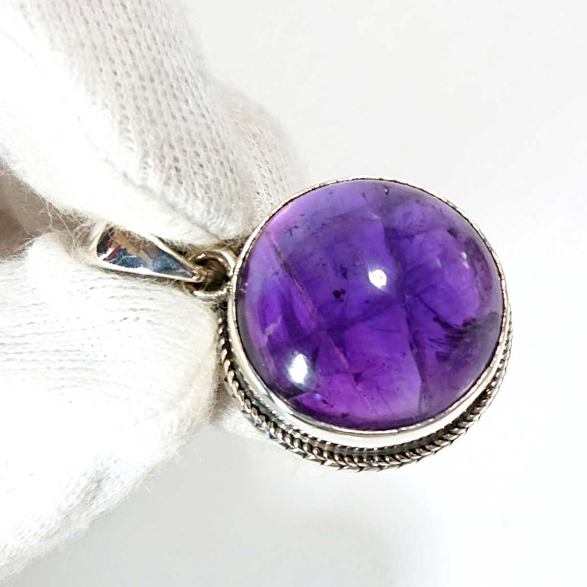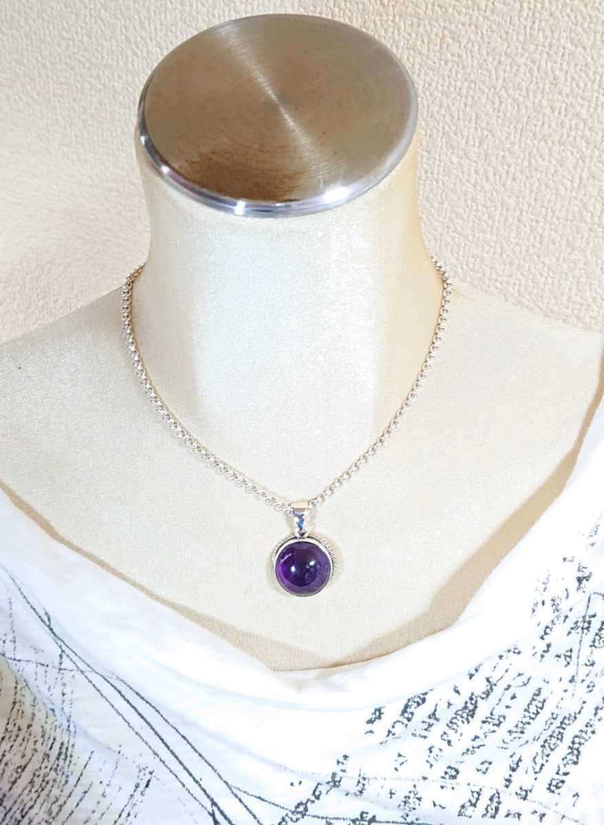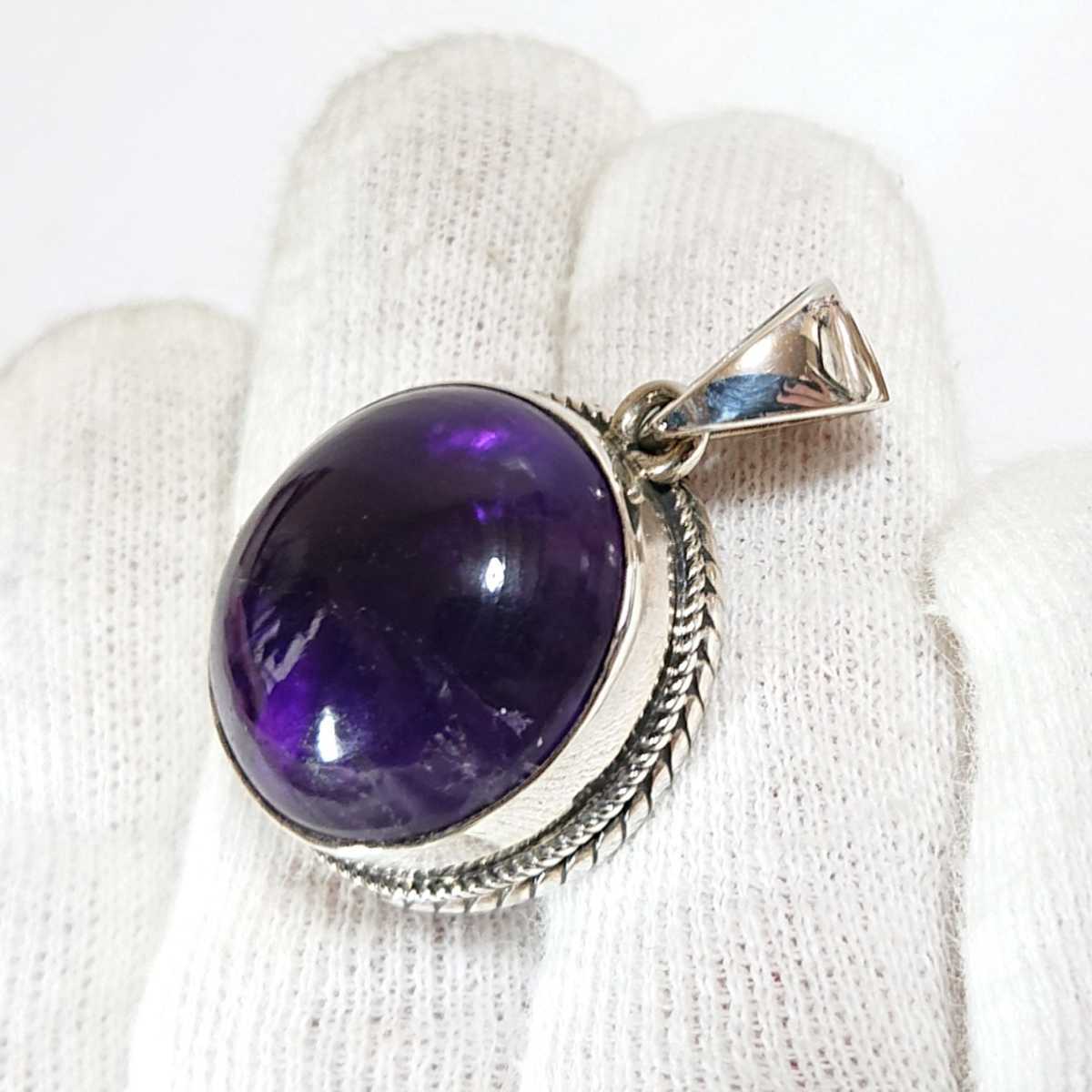 珍しい丸い形が特徴的で紫の色味も濃くとても綺麗なストーンです。