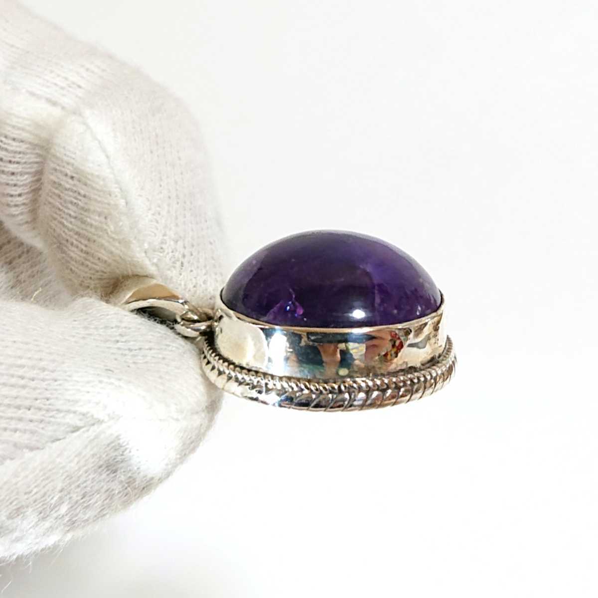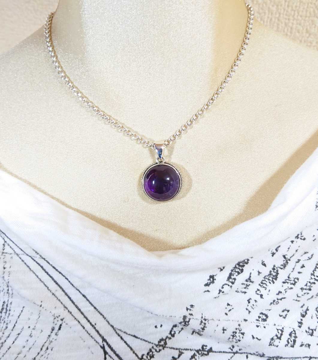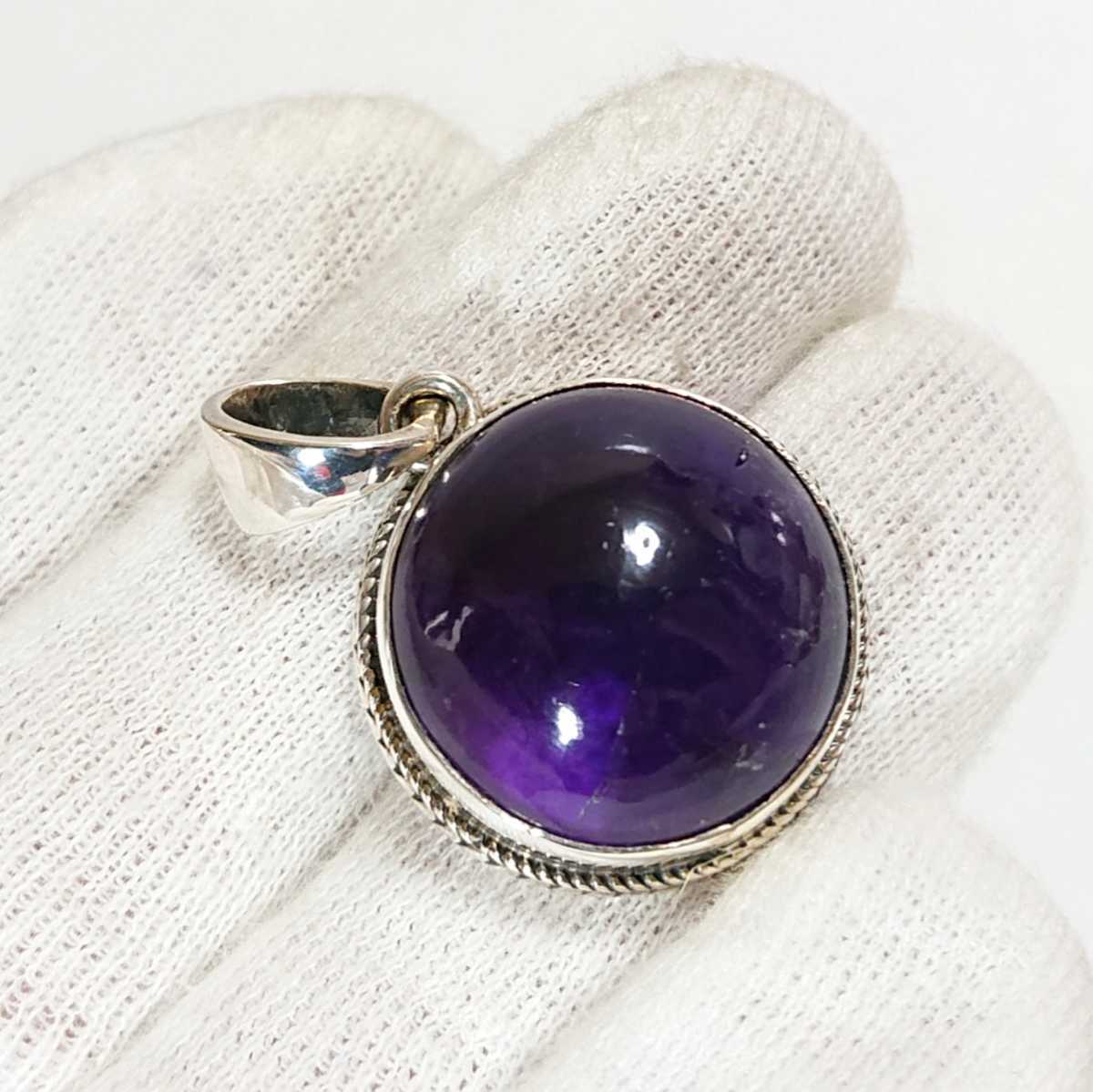 珍しい丸い形が特徴的で紫の色味も濃くとても綺麗なストーンです。