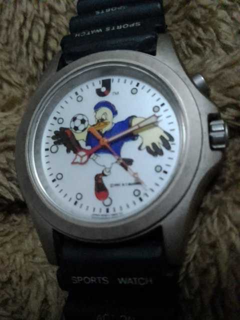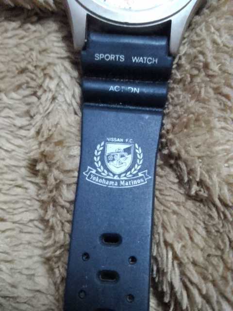 希少 横浜マリノス デザイン腕時計 電池式 クウォーツ 稼働中 Jリーグ開幕当時オフィシャルグッズ 幅3.5センチ 非売品の日産FC横浜マリノスのエンブレム入りのバンドに交換してあります 完成なるオリジナル時計かと。機能はバックライトが点滅するのみです 欲しい方に USED