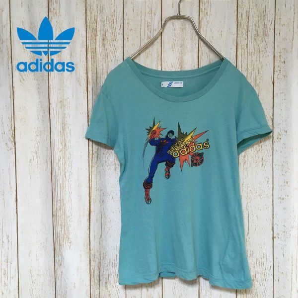 【レア!】adidas originals アディダス オリジナルス ヒーローTシャツ トレフォイルロゴ ブルー 38/Mサイズ レディース カットソー