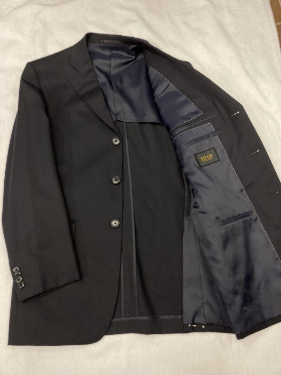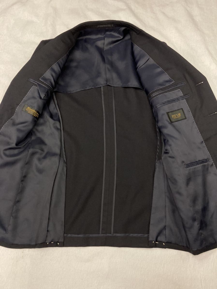 リクルートやフレッシュマンに最適なシングル3ッ釦スーツ 上着の裏側ポイントステッチ 袖を通しやすく袖裏にキュプラ100%