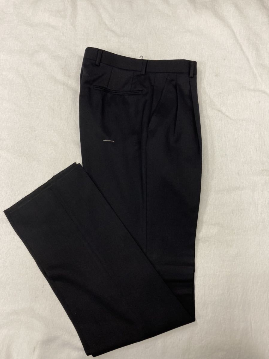袖釦は重ね釦の4個 セッパ付き 2タック ヒザ裏付き