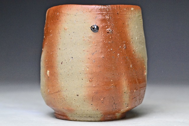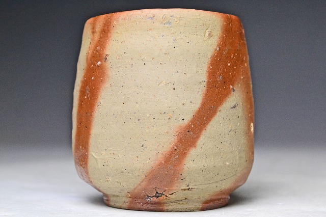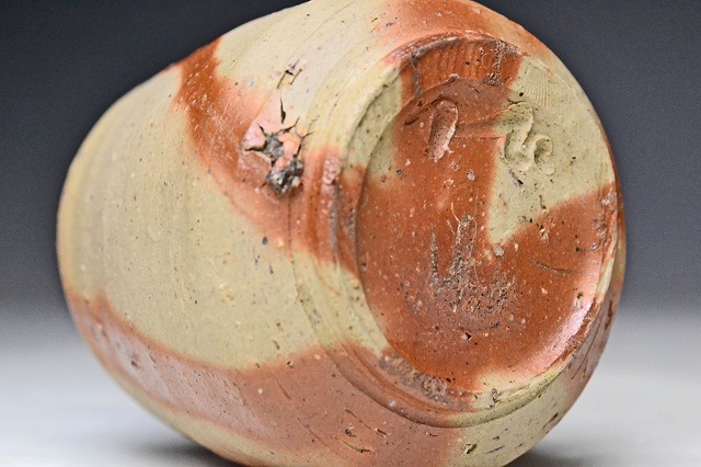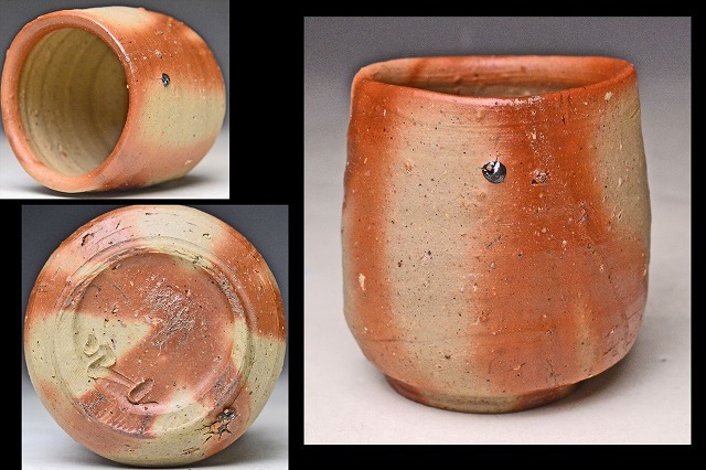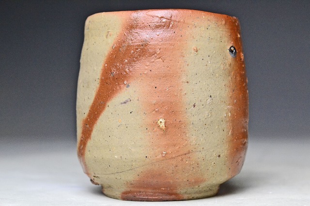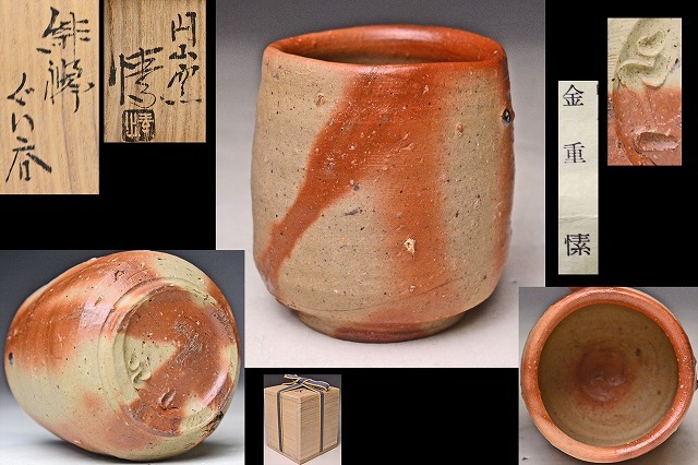 金重まこと ★ 備前 緋襷 ぐい呑 ★ 共箱 栞 ★父:金重素山 ★ 手取り良く緋色の美しい逸品 ★ 検 人間国宝 金重陶陽 金重有邦