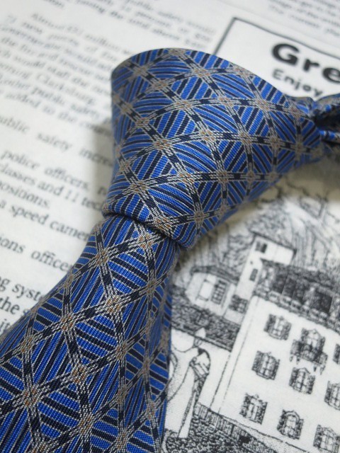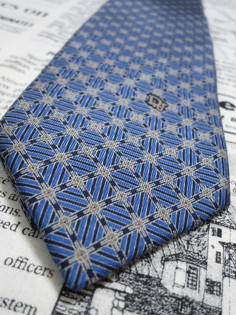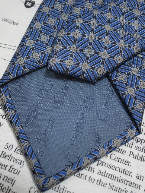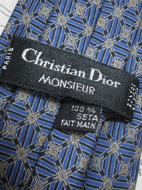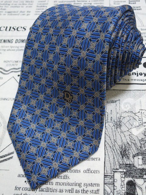 光沢がありオシャレ! クリスチャンディオール Christian Dior 美品 未使用品 微光沢 ネクタイ 格子 パターン柄 青系 ブルー C-004549 | |