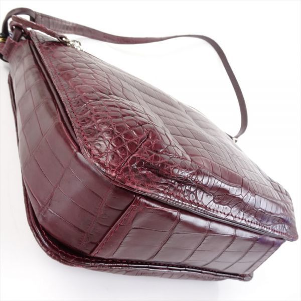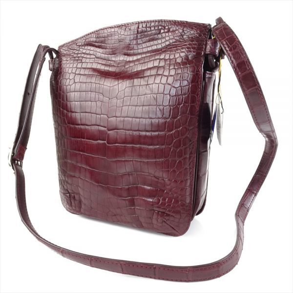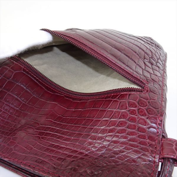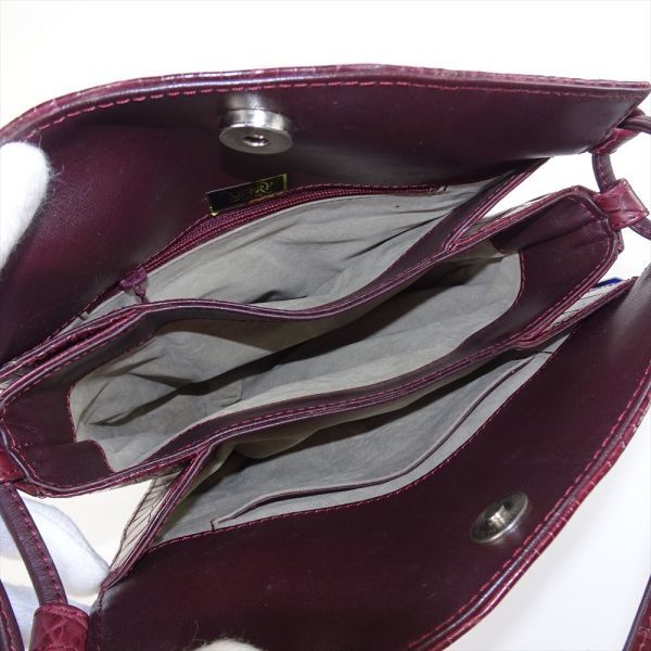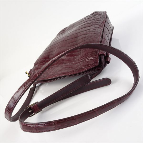 高級 クロコダイル ショルダーバッグ ボルドー 斜め掛け レザー 収納多数 |