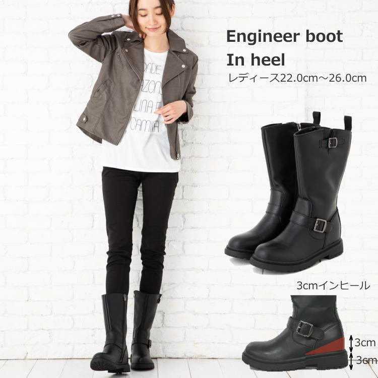 ※つま先にスチールは入っていません。「6cmアップ」エンジニアブーツ シークレット インヒールで美脚&脚長効果/レディース/ヒール/脚長/美脚/ロングブーツ/バイク ブーツ/背を高く