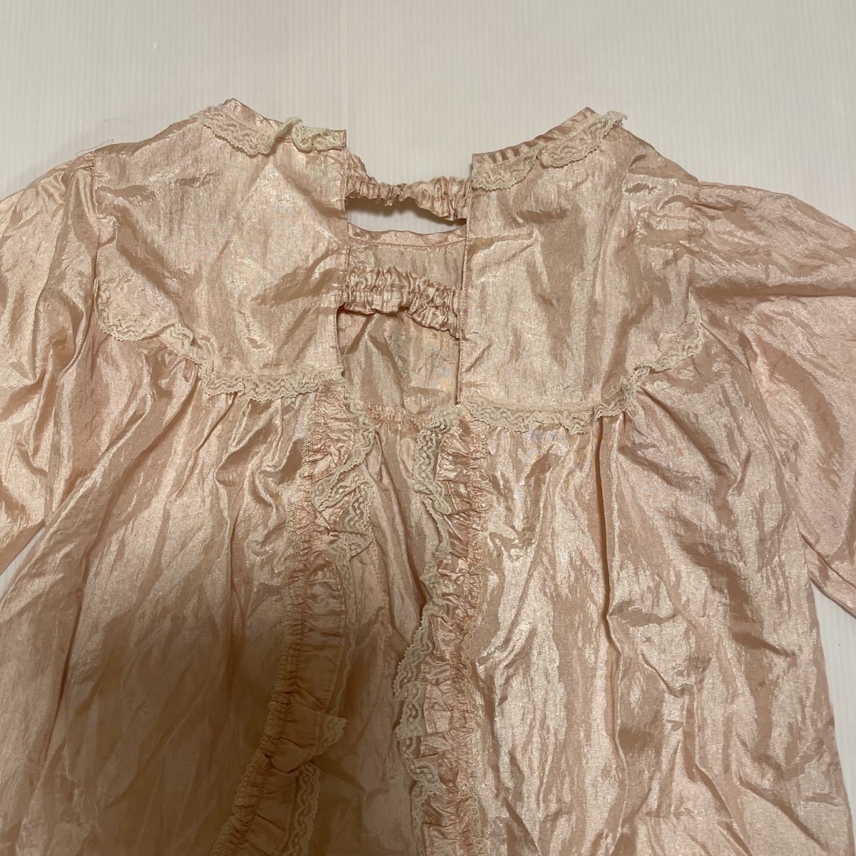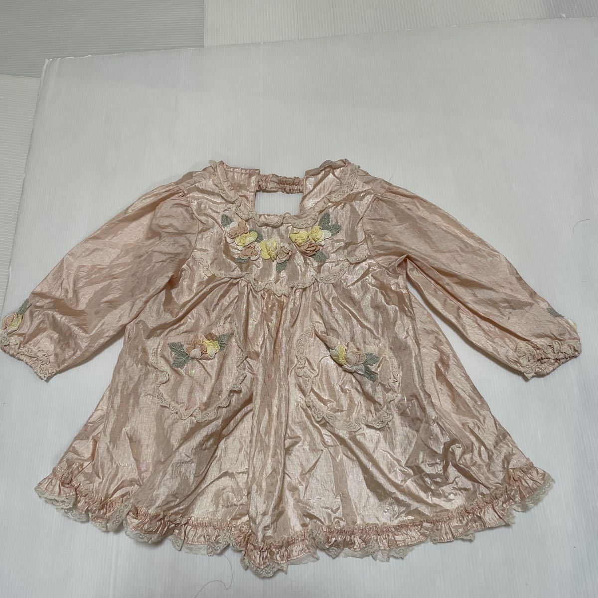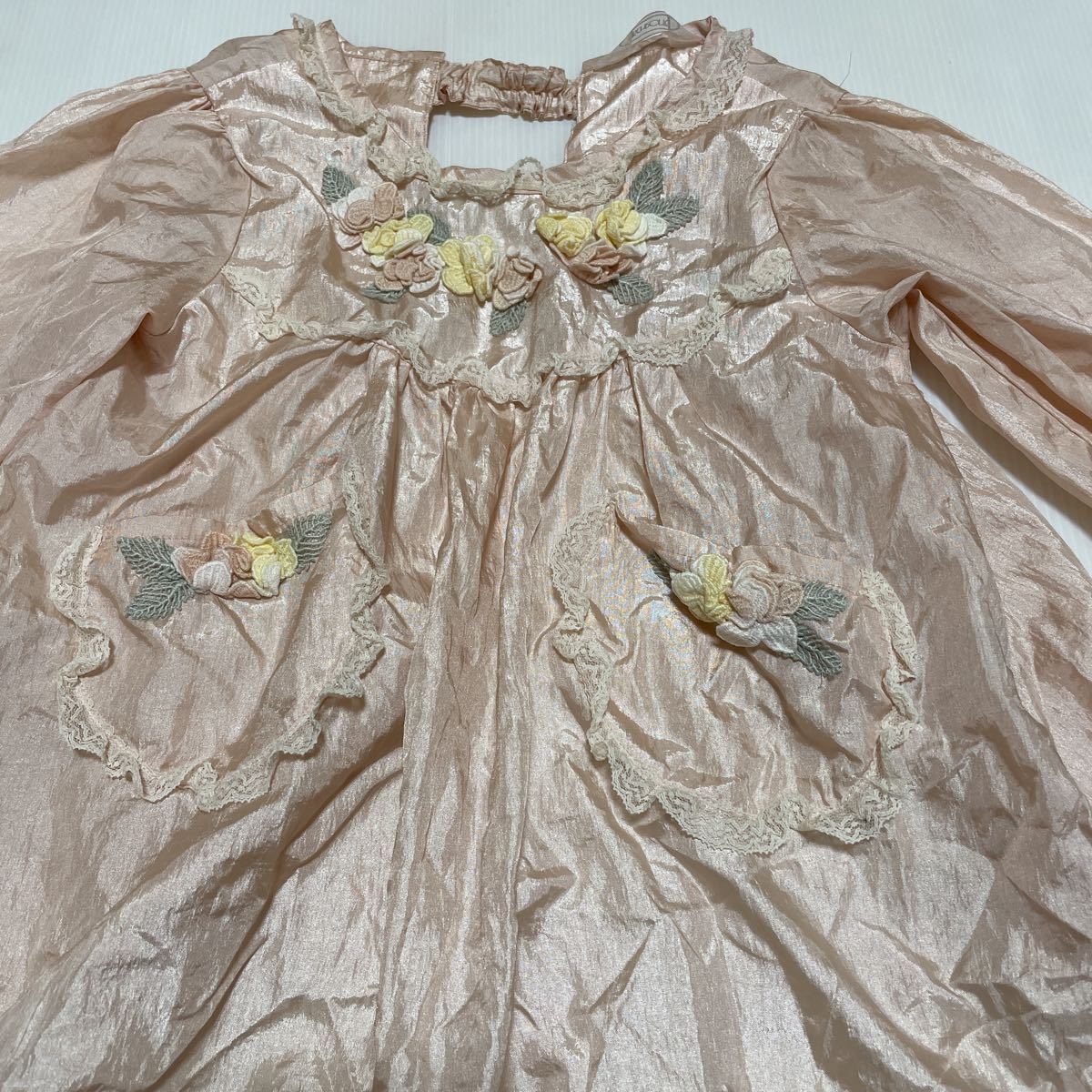 薄ピンクのサテンにレースとお花のモチーフがついた豪華なエプロンです。 結婚式やパーティーに!