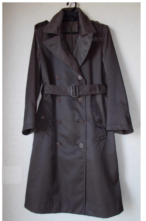 COUPLES レディース トレンチ コート レインコート ベルト付 ひざ下 長袖 茶