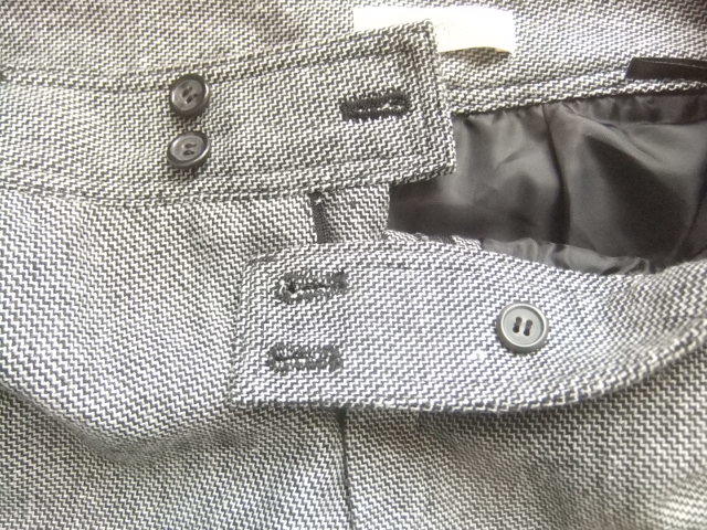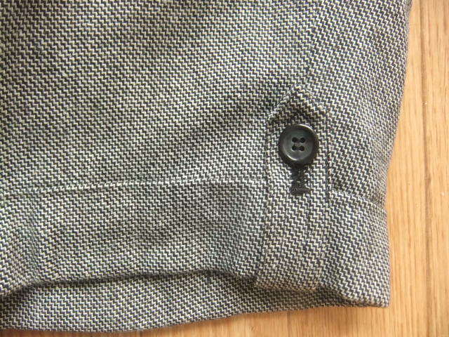 裾は折り返しで、両サイド裾ベルト&ボタン留めデザイン。