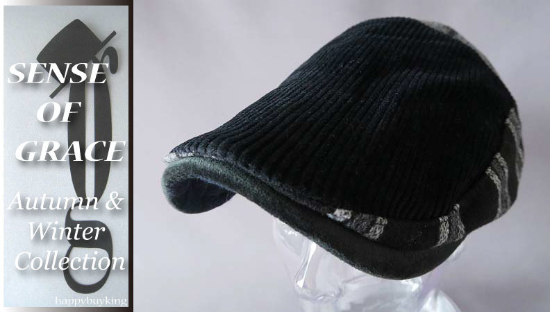 grace 大きいサイズ★コーデュロイビッグハンチング【黒/XL】新品 定価¥4600 パッチワーク サイズ調節可能 男女兼用 センスオブグレース