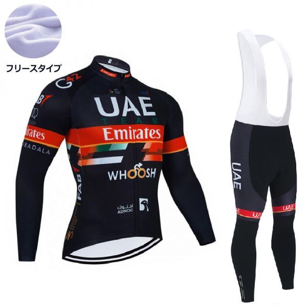 新品 長袖 裏起毛 上下セット No81 Lサイズ UAE サイクルジャージ ウェア メンズ サイクリング MTB ロードバイク 自転車 フリース