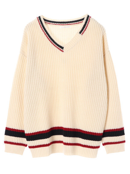 温かみのある独特な風合いの生地感のプルオーバーニット首元と袖周り、裾の2色ラインがシンプル過ぎずに、すっぽりと1枚で被ってもこなれ感UPすっきりとした深めのVネックが小顔見え効果もあり、インナーやボトムスとのコーディネートもおススメですサイズ:F (身幅123cm,着丈68cm, 肩幅63cm,袖丈50cm,裾幅48cm)カラー:オフホワイト素材: アクリル100%ブランド名 :E hyphen world gallery定価 5,489円(税込)新品(札付き)の商品です。