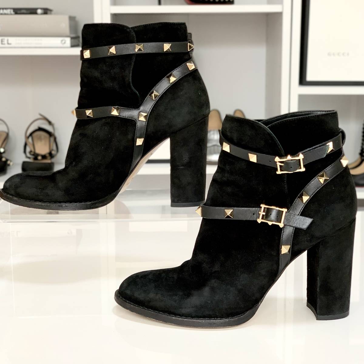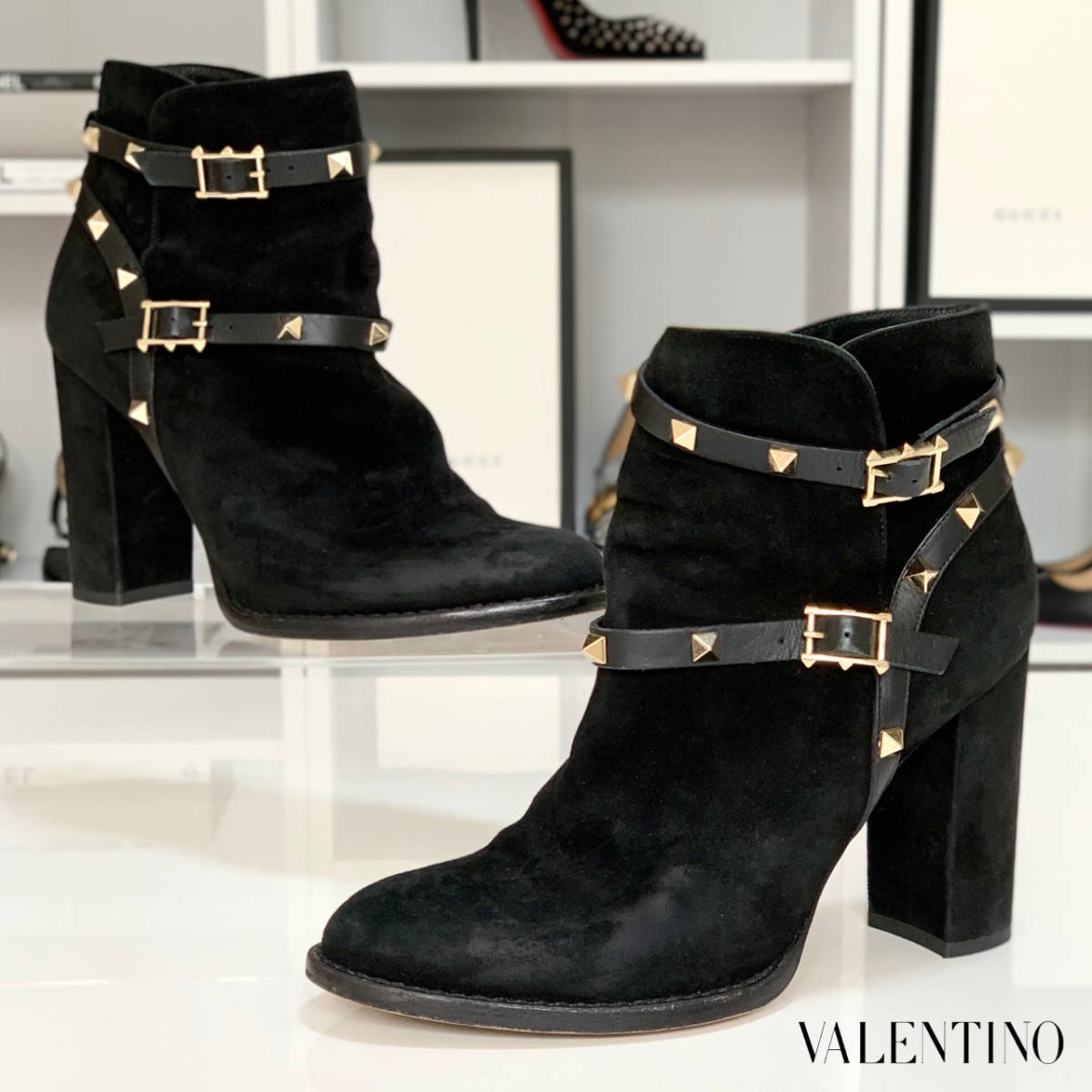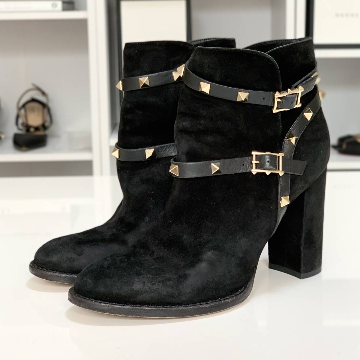 ヴァレンティノ ロックスタッズ スエード ショートブーツ ブラック