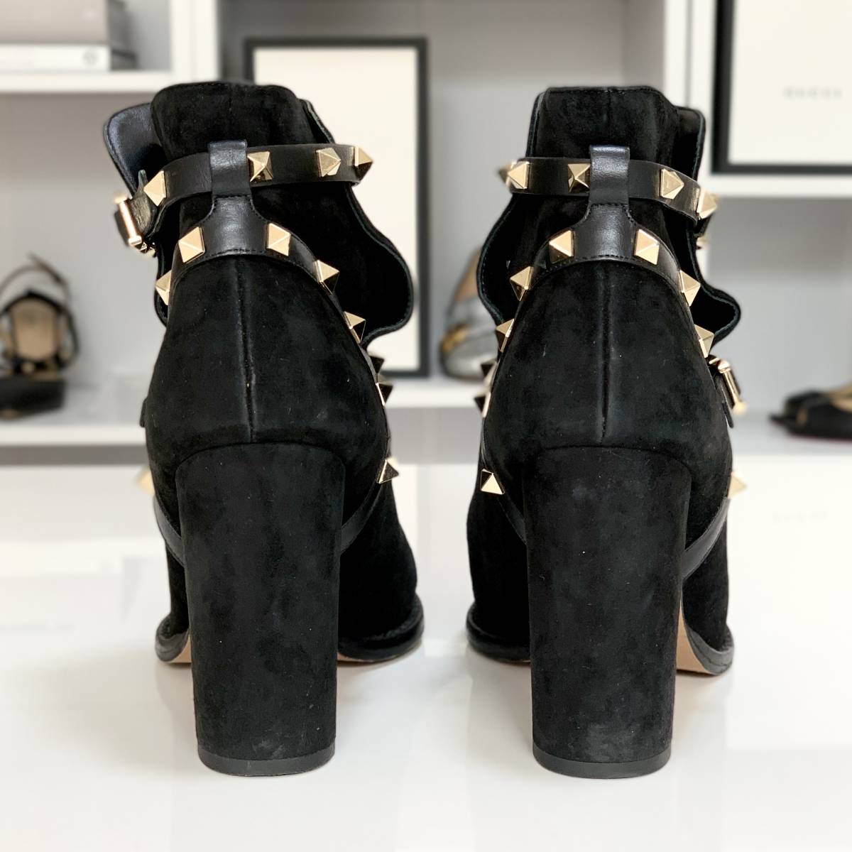 3048 ヴァレンティノ ロックスタッズ スエード ショートブーツ ブラック