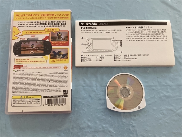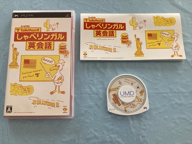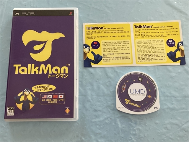 ケース(2枚ともスレあり)、説明書(トークマンは欠品、英会話は良好です)、ディスク(盤面は2枚とも良好、UMDケースは2枚ともスレあり)のセットです。