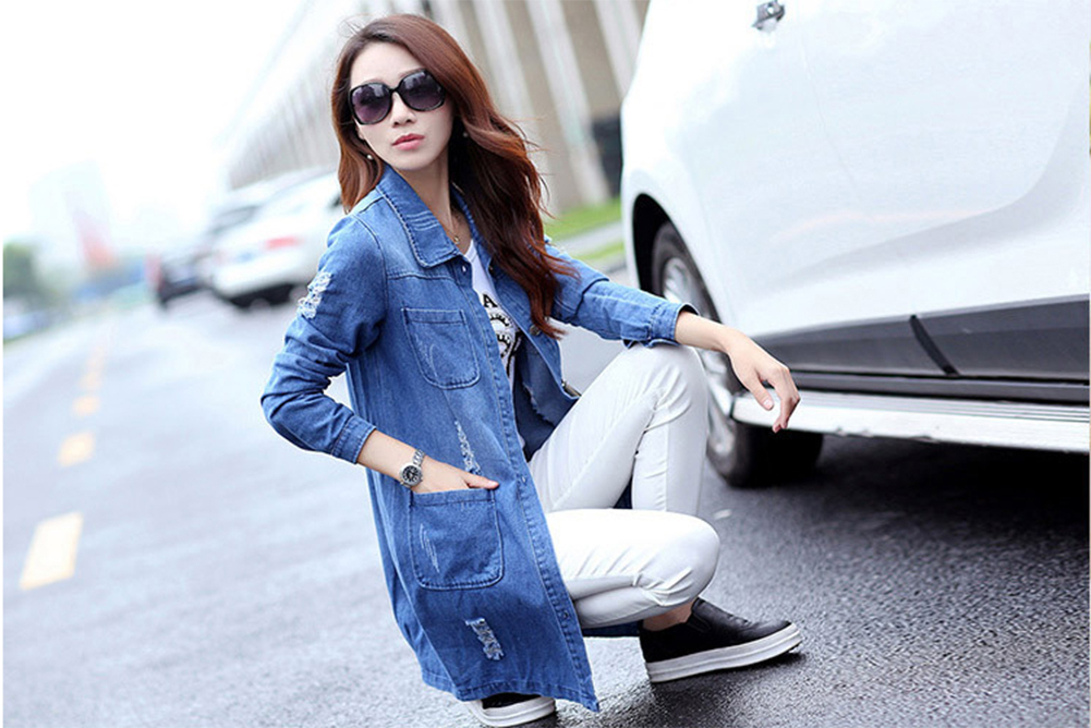 レディース デニムコート 長袖 ロング デニムジャケット アウター 春服 ゆったり カジュアル 大きいサイズ オシャレ