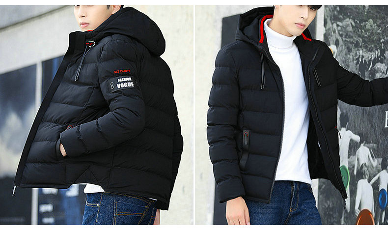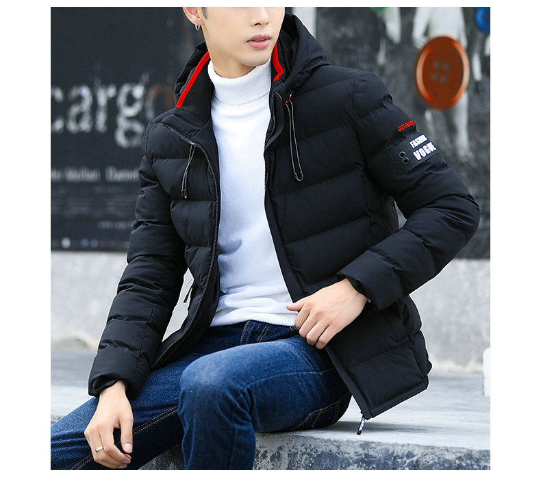 2020 冬のジャケットのフード付きメンズ冬コート カジュアルスリム学生のオーバーコート【色:Black】【サイズ:XXL】※送料無料