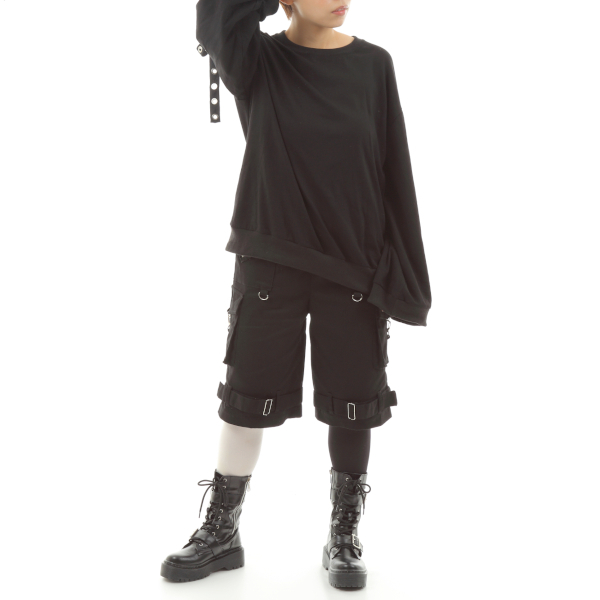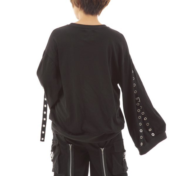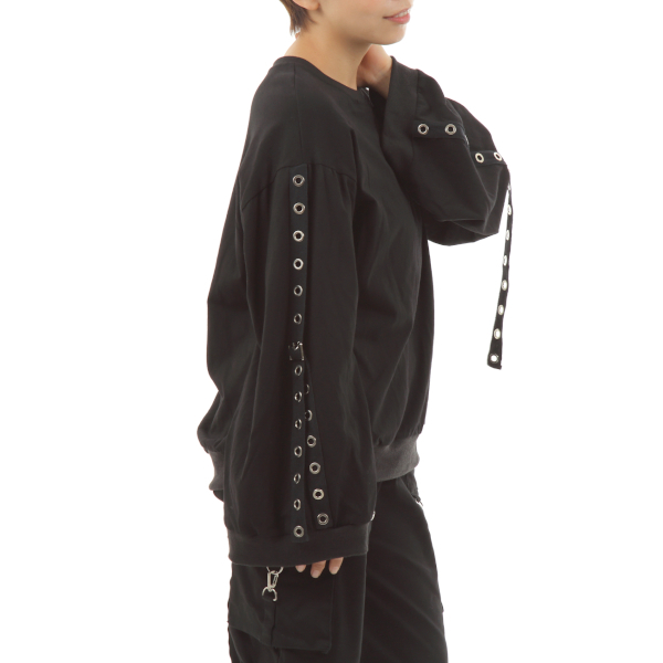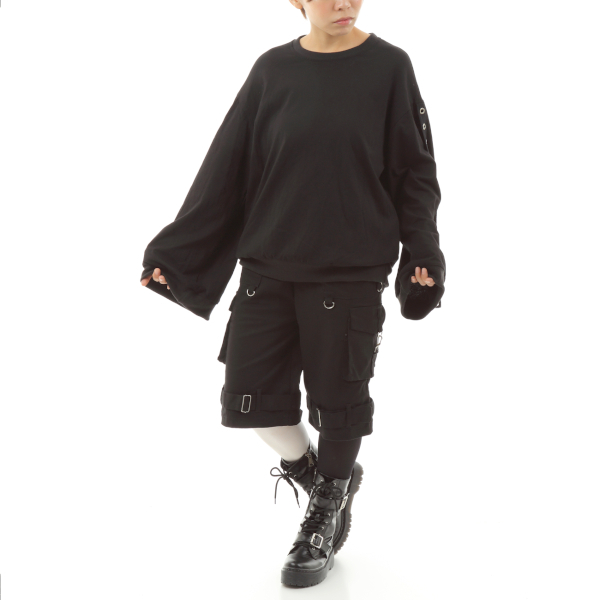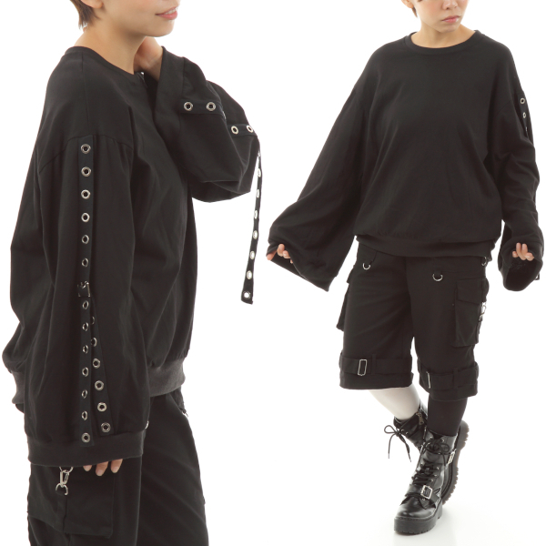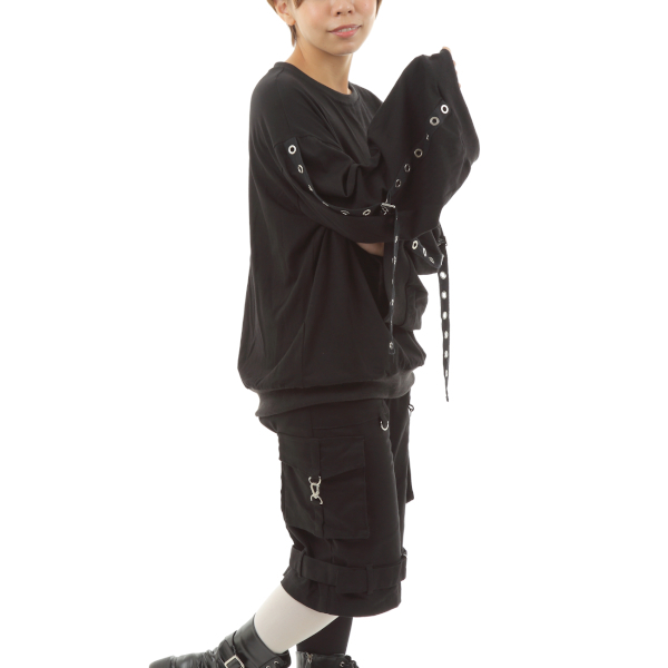 商品説明 | ★カット素材、ビッグシルエット、袖の幅が広いフレアースリーブ、袖に肩からハトメベルトの装飾です、肘あたりでベルトにより袖の長さが調節できます。(5940) |