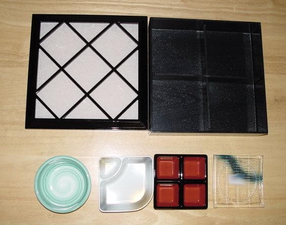 即落札★高級障子蓋弁当箱・正角4★仕切り取り外し式