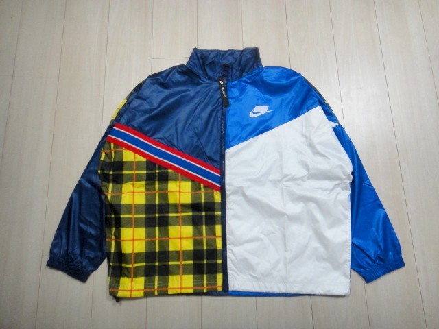 NIKE(ナイキ)のジャケットです ■新品未使用です タグも付いております(紙タグに少々ダメージがあります) ■サイズは女性サイズの2XLになります 素人採寸ですが 身幅(脇の下で)75センチ 身丈69センチありました(大きめサイズですので男性カテゴリーにさせて頂きました) ■表地はポリステル100%です ■マルチ(多色)デザインとなっております 様々な色が組み合わさったユニークなデザインです ■スタイルはLOOSE FITとなっております ■ボディ部の裏地はメッシュ地となっております ■ポケットは正面左右に付いております ■正面にはナイキのマークが付いております ■ナイキのファンの方いかがでしょうか 是非よろしくお願い致します