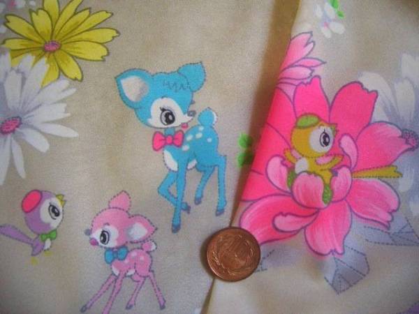 レトロビンテージ生地*バンビ小鳥お花尽くし☆コレクションリメイクハンドメイド