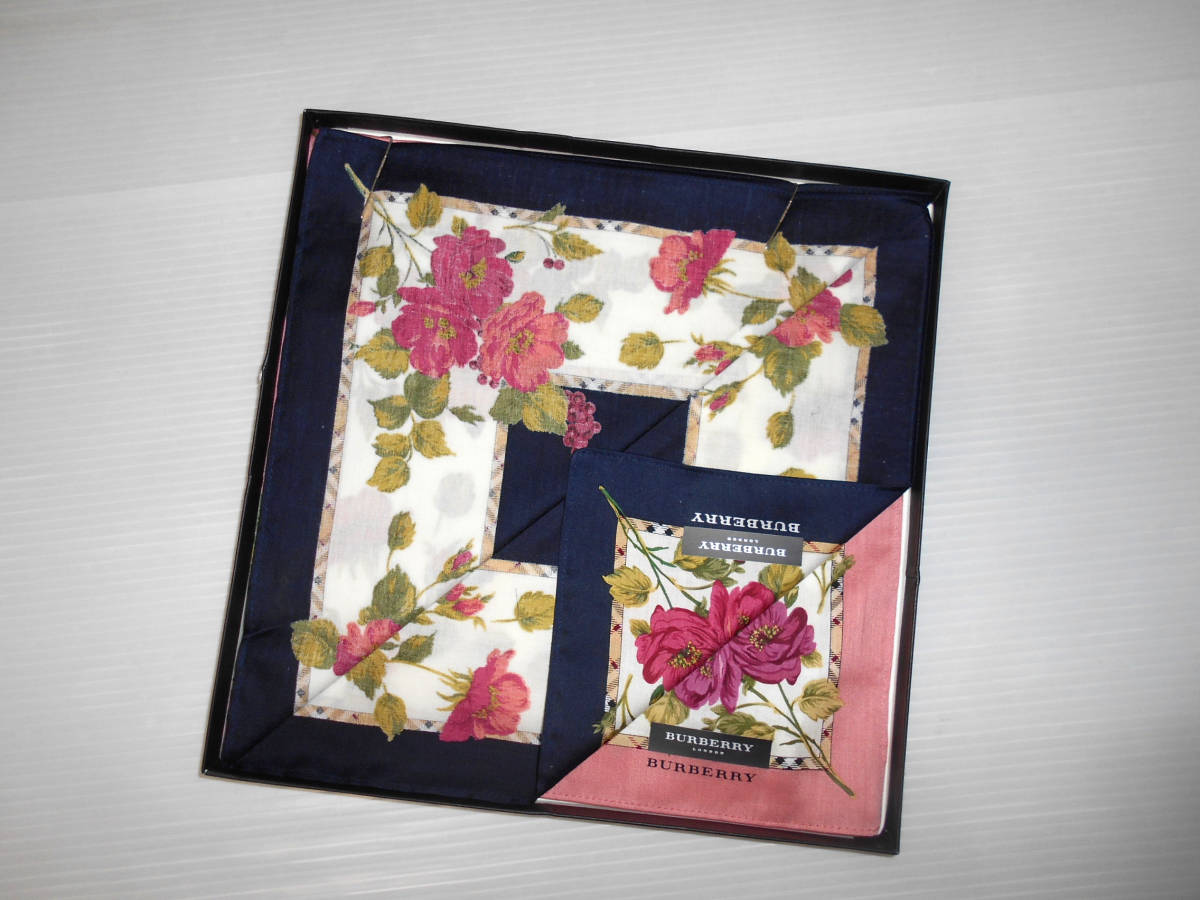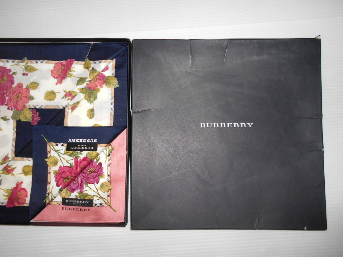 未使用◆ バーバリー Burberry ミニスカーフ ポケットチーフ 2枚セット です。 正規品です。 素材は綿100です。箱に傷み、破れ、汚れがあります。