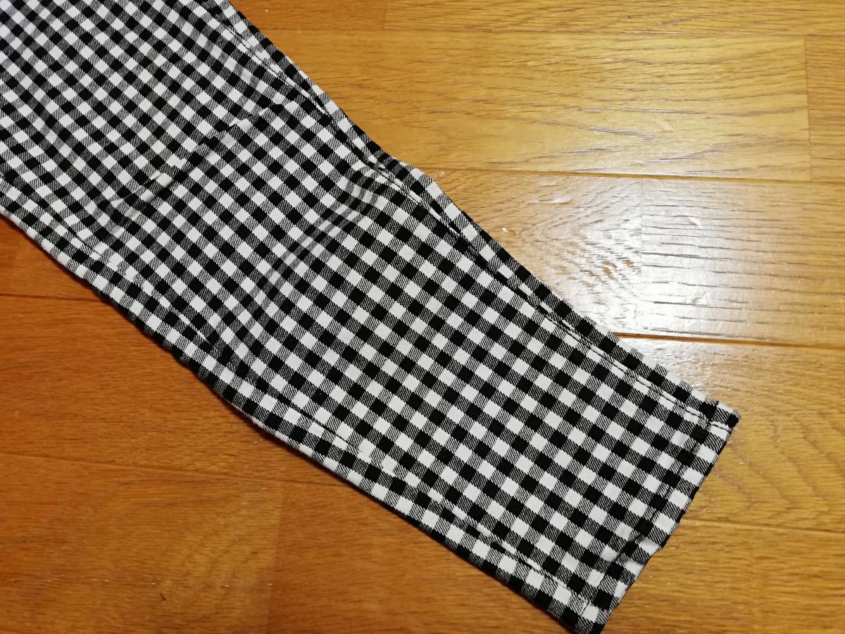 パンツ丈 約76センチ、股下 約57センチです。ピッタリして履くスリムタイプです。