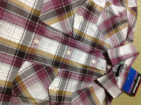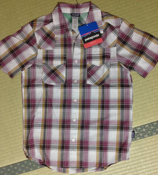 PATAGONIA Three Trees Shirt オーガニックコットン 通気性 軽量 半袖 cool シャツ 白×茶色×紫×黄土色 XS