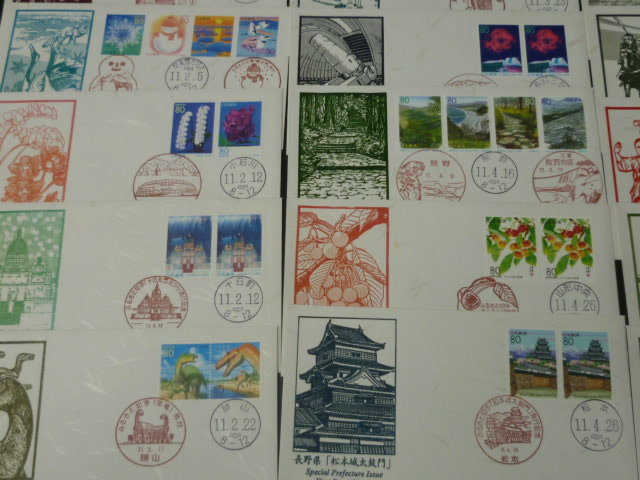 19 S №11 日本 ふるさと 初日カバー 1999年 地375-459の内 50円・80円 ペア貼・他 計26通