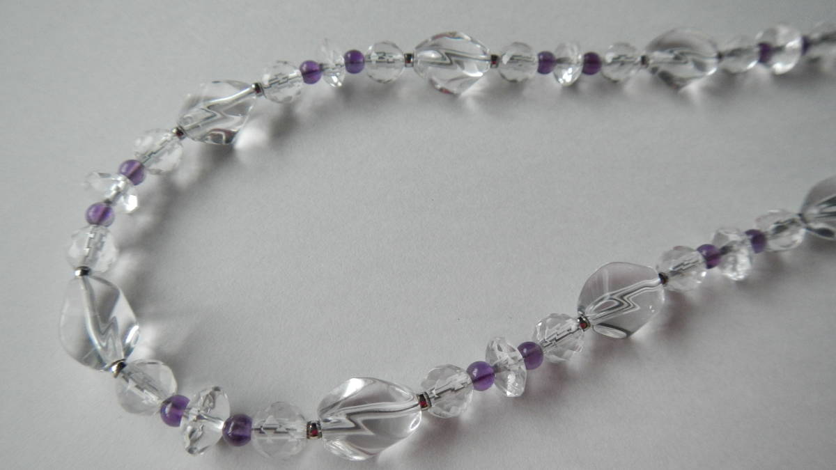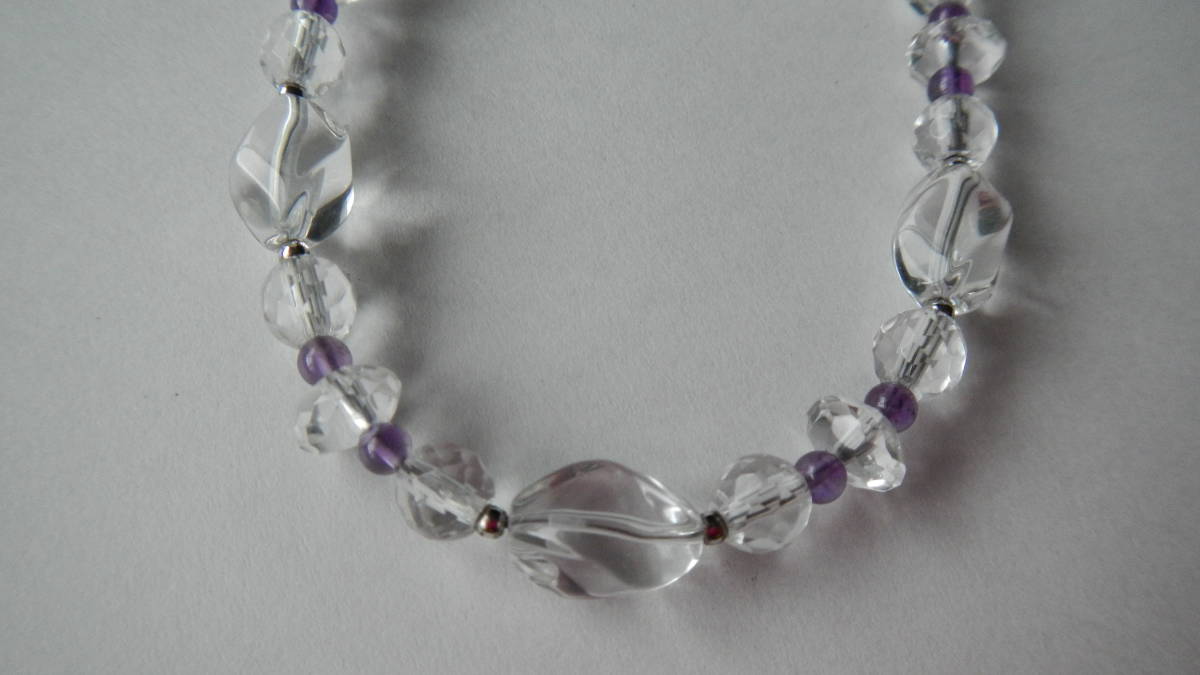 ネックレス 【管理番号11】 水晶とアメジスト調 SILVER MADE IN JAPAN刻印あり 日本製 シルバー アクセサリー 部品取 おしゃれ キレイ 女性