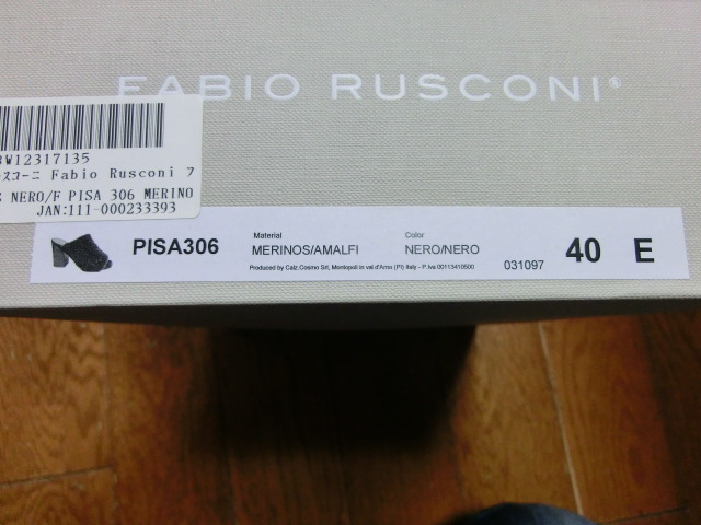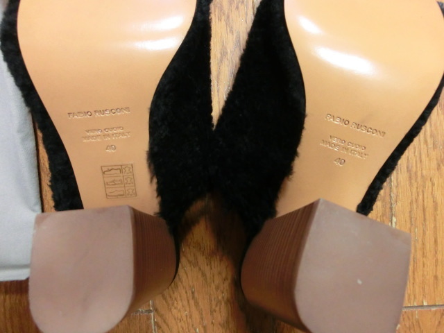 ファビオルスコーニ ファーミュール PISA306【40:26cm?】 です♪ 2018年の春頃に 大手通販「ロコンド」にて購入した物です。(履歴に残っております) 【Fabio Rusconi /ファビオルスコーニ】 イタリアのフィレンツェ在住のシューズデザイナー、Fabio Rusconiが1998年に立ち上げたブランド、Fabio Rusconi(ファビオルスコーニ)。 若く行動的で洗練された女性がターゲットです。 トレンドをいち早く取り入れ、「私だけ」のデザインへと昇華させたシューズを発表。デザイン性の高さと履きやすさから、セレクトショップなどでも人気が高まっているブランドです。 「ファビオルスコーニ」は、大きな百貨店では必ず取扱いのあるシューズブランドです。特に、ミュールやサンダルが大人気で、皮革素材を中心に四季を問わず何十種類も販売されております♪ 私の足のサイズは・・甲高で24.5cmではキツくて25cmでは大きい微妙なサイズなのですが・・ファビオの39(日本サイズの25cm)でジャストサイズなので、ここ数年はミュールやサンダルを買い続けております(^_^;)。 口コミでやや小さいとの評価だったので、40を購入後直ぐに箱を開け、サイズ確認のみしたっきりでした。外反母趾が進んだ私の足には プラットフォームが薄い分 足が前のめりになり、外反母趾が悪化してしまいそうなので(T_T)履かないまま今に至ります(涙)その後は玄関の片隅に4年以上保管しております。このミュールの他に ファビオのサンダルの在庫が沢山ありますので・・今後も使用しません。綺麗な状態の内に出品致します! ★落札価格よりも高値で再出品・・・の転売目的ではなく、ご自身で大切に使って頂ける方にお譲りしたいと思います(*^_^*) *以前「子供にプレゼントします」と仰った落札者様が落札後に購入価格より高値で再出品されていました。オークション故仕方のない行為かと思いますが・・・初めてされた行為でしたのでガッカリしています(._.) ※出品開始価格について・・・私が出品している商品で「あの商品はお値打ちなのにどうしてこの商品は高いの?」という疑問があるかもしれません。理由は、使用回数・お品の状態・そして何よりも以前譲って頂いた方よりも安く設定させて頂いております。なので高く譲って頂いた商品は、それなりの価格になってしまいます。予めご理解願いますm(__)m ■価 格・・ルコラインで調べました。定価は 税込 29,700円です。 宜しかったら商品ページをご覧ください↓ https://www.locondo.jp/shop/commodity/SSNK0058D/FA933BW12317 ■素 材・・本革(アッパー表裏・ソール等)×ゴム底? ■ 色 ・・黒色(PCの機種や環境、モニターの状況等によっては、実際の色・イメージと若干異なる場合があります。記載されている色と画像の色の違いを感じる様でしたら、質問欄よりご質問頂けましたら私なりの表現で色合いを説明させて頂きます)※素材といい、色といい、真夏以外は活躍できるミュールかと思います♪ ■サイズ・・40(日本サイズの26cm?) ■ヒール高・・10cm(プラットホームの高さ:1cm弱) ■付 属・・靴袋・外箱(購入当初から薄汚れ・貼ってある包装紙のヨレや箱潰れ有) ★荷物をコンパクトに纏めたい方には 嵩張る箱は不向きですので、不要の際は「不要です」と申し付けて下さい。★ ■状 態・・届いて自宅の部屋にて片足試着のみです。出品にあたり、今一度隈なくチェックしたところ、★【訳有】は、保管によるメリノファー部分が寝てしまっていたり癖が付いてしまっている点です。その他、未使用と言えど 一度は人の手に渡った物であることをご理解頂けたらありがたいです。※一度でも人の手に渡った事が気に入らない方・ファーのコンディションが気になる方は 入札されない方が宜しいかと思います※ ※商品の状態に手厳しい方・拘りのある方・煩い方・ほんの些細な事でも気になる神経質な方は絶対に入札しないで下さい!※その他 画像にてご確認下さい(写真6枚目以降参照)しかし、人それぞれ捉え方の違いがありますので・・・些細な事でも気になる神経質な方・自宅保管の品=良い状態と勝手に思い込んでいる方・若しくは店頭に置いてある商品と同等レベルの物をお求めの方や見落とし等 人のミスも許せない完璧主義者の方は絶対に入札しないで下さい!また、完全な新品をお求めの方は、ファビオルスコーニにて今季物でファー素材を用いたミュールを定価でご購入される事をお勧めします。それに購入後は素人が4年以上保管していた物なので、神経質な方の入札もご遠慮願います。個人所有の未使用商品にご理解のある方のみのご参加を願います!最近関税の取締りが厳しくなっております(現に私もこの4年で3回引っ掛かりました(T_T))安心の国内発送です。お値打ちに ファビオルスコーニのファーミュールを手にされたい方、いかがですか?インソールは皮革製ですので、履いている内にご自身の足に馴染んでくるかと♪モフモフの毛足の短いリアルファーが可愛らしく、インソールが皮革製なので暑苦しさを感じませ