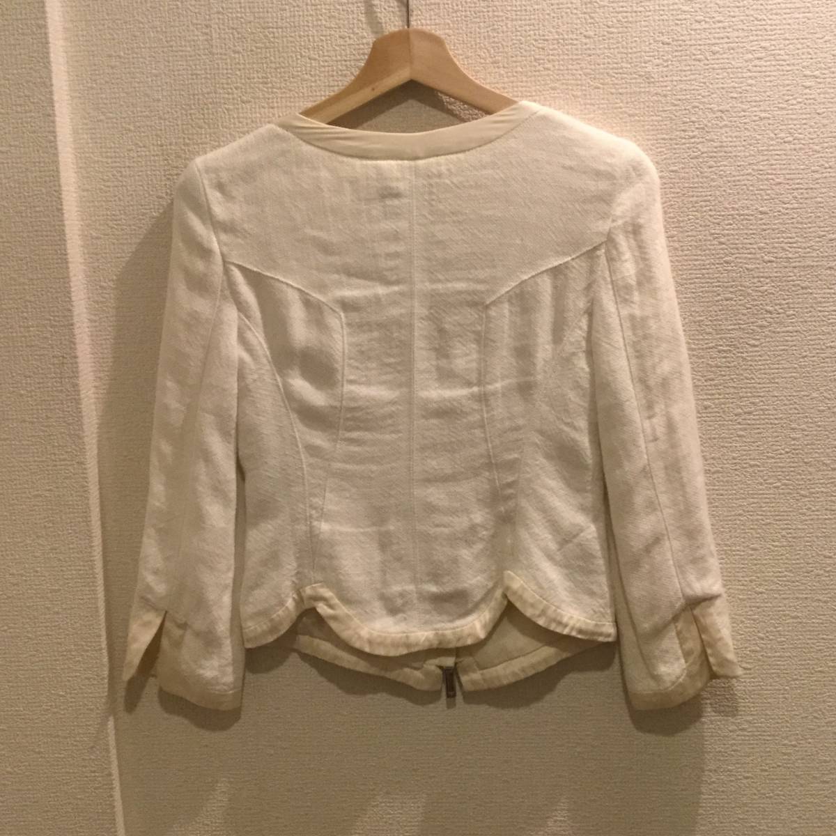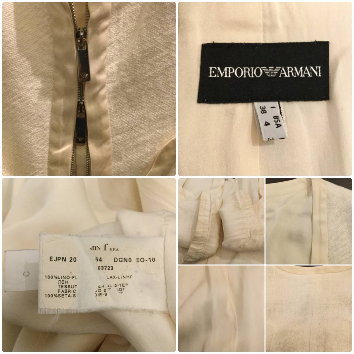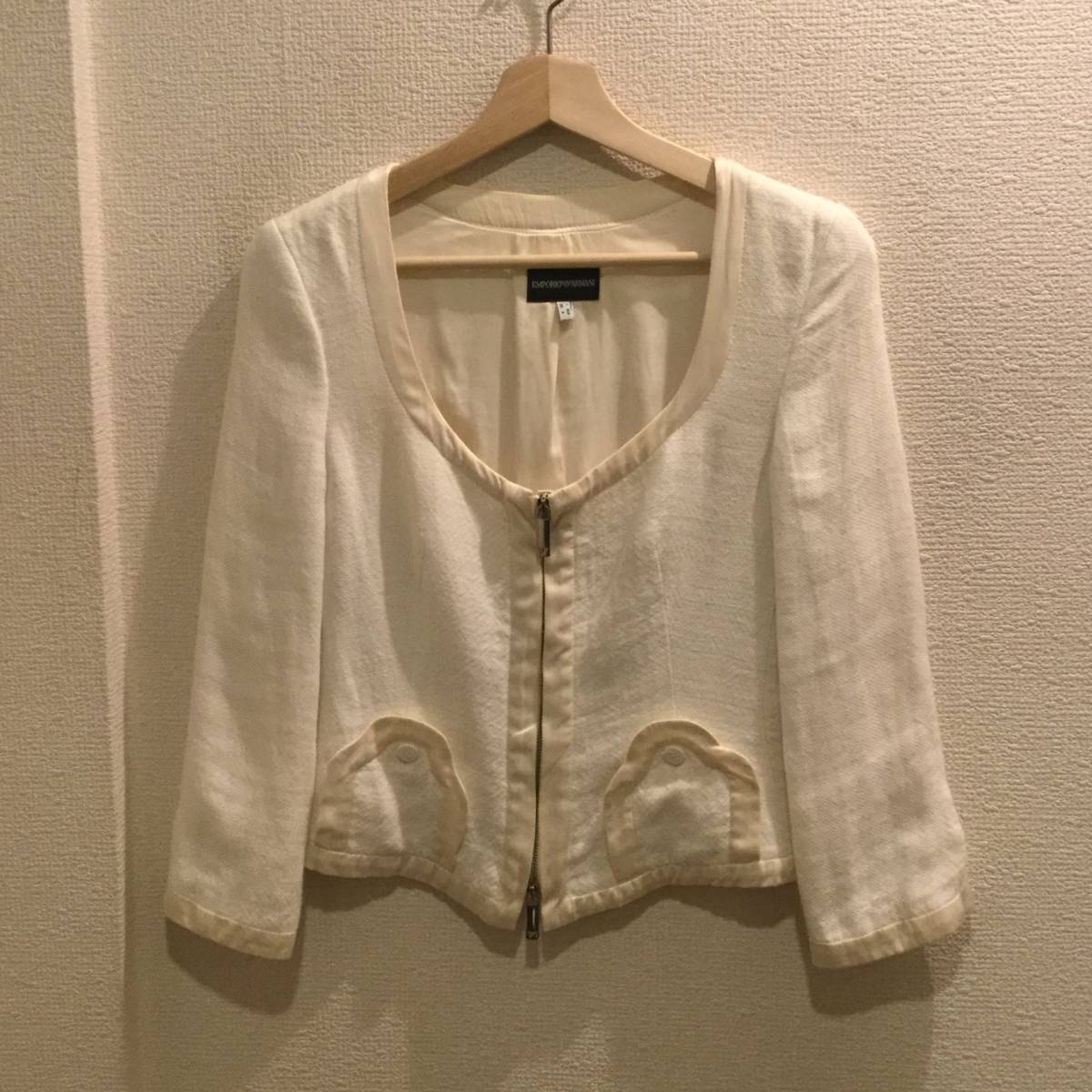 エンポリオアルマーニ 黒タグ裏地シルク使いリネンダブルジップノーカラージャケット38