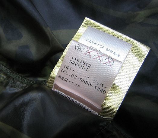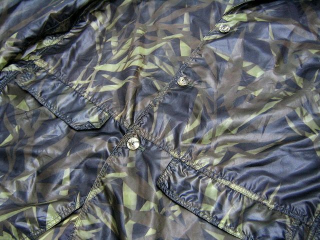 ITALY製のTHE BUNNY JACKETの迷彩風のナイロンジャケットです。 「バーニーズ ジャパン (株)」の取扱い品です。 迷彩風のインパクトのあるデザインです。 薄手のナイロン素材ですので、とても軽くて着やすいです。 春先のライトアウターにオススメです!! (サイズ)L・肩幅45㎝ 脇下身幅55㎝ 最小身幅48㎝ 着丈69㎝ 袖丈66㎝ (素材)ナイロン100% (カラー)グリーン系 (商品状態)使用感がありますが、特にダメージなどはありません。 |