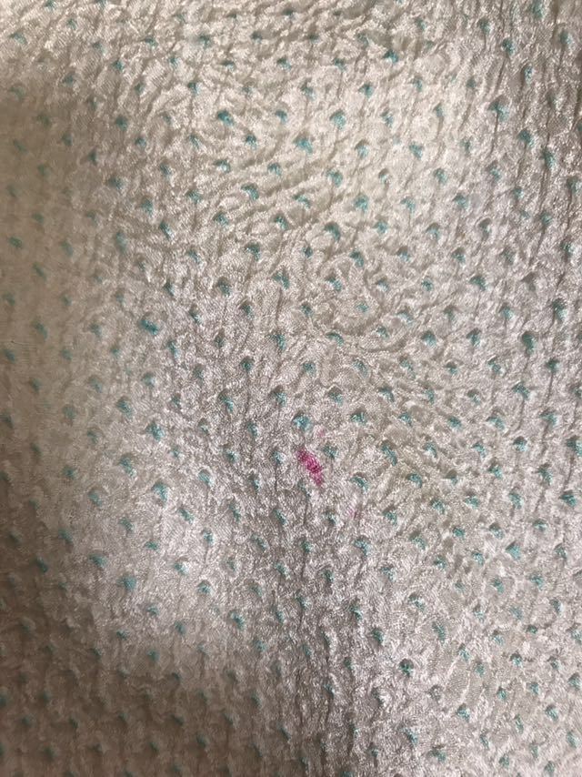背中の丸印の位置に、画像のようなピンク色のマジックでつけたようなシミがあります。