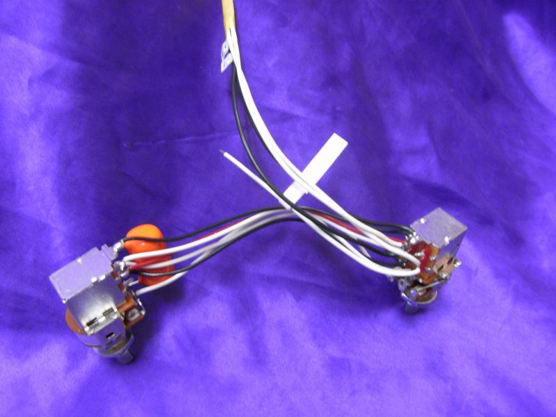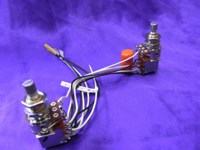 A500k×2(インチ規格、プッシュ-プル式スイッチ)、オレンジドロップ0.022μF、ベルデン8503ワイヤ(指示線除く)