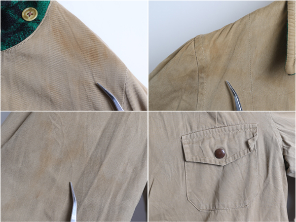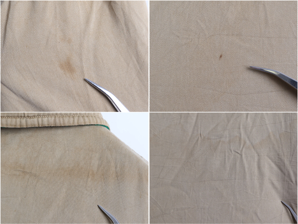 袖口に軽いダメージ、裏のコットンの側にシミや汚れがあります。 目立つヨゴレ等無く着用するのに問題ない程度です。 |