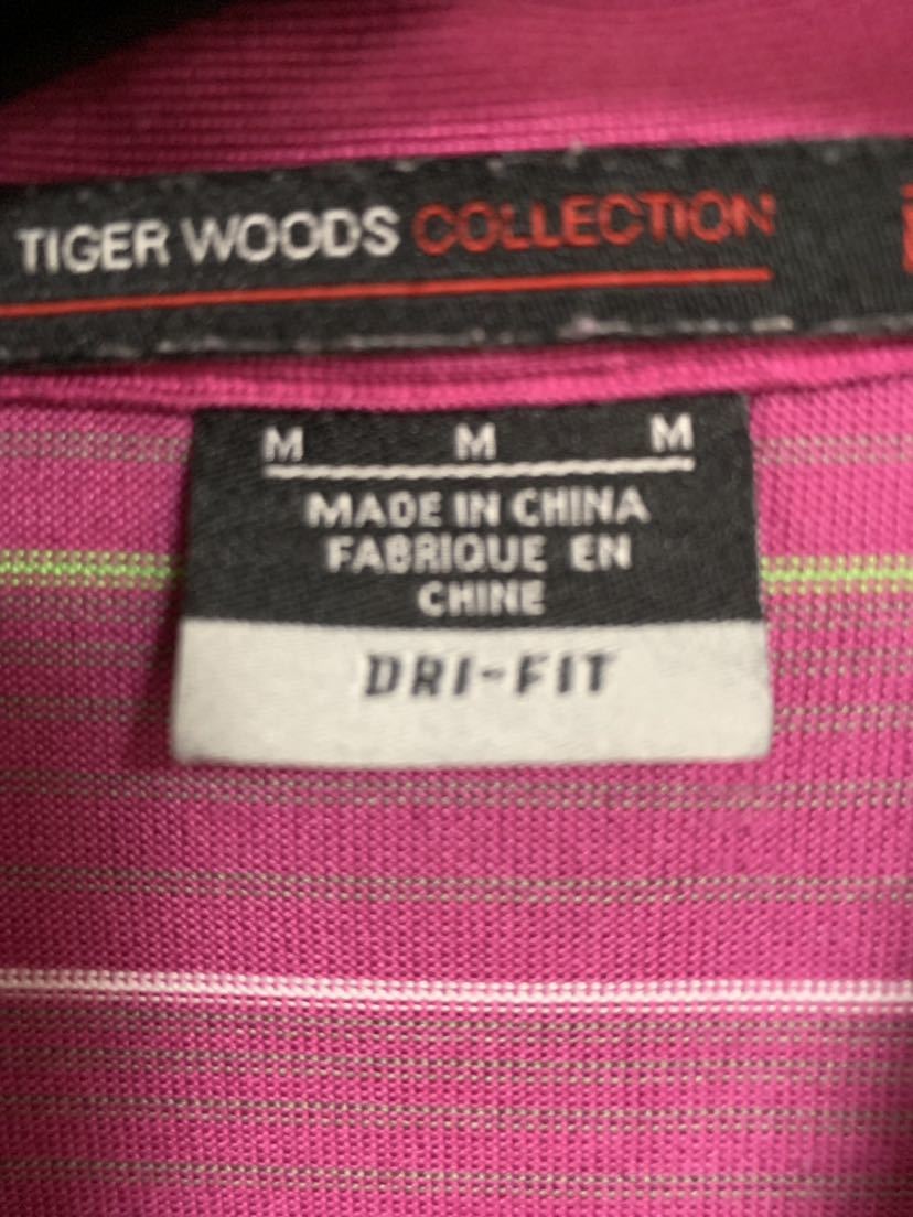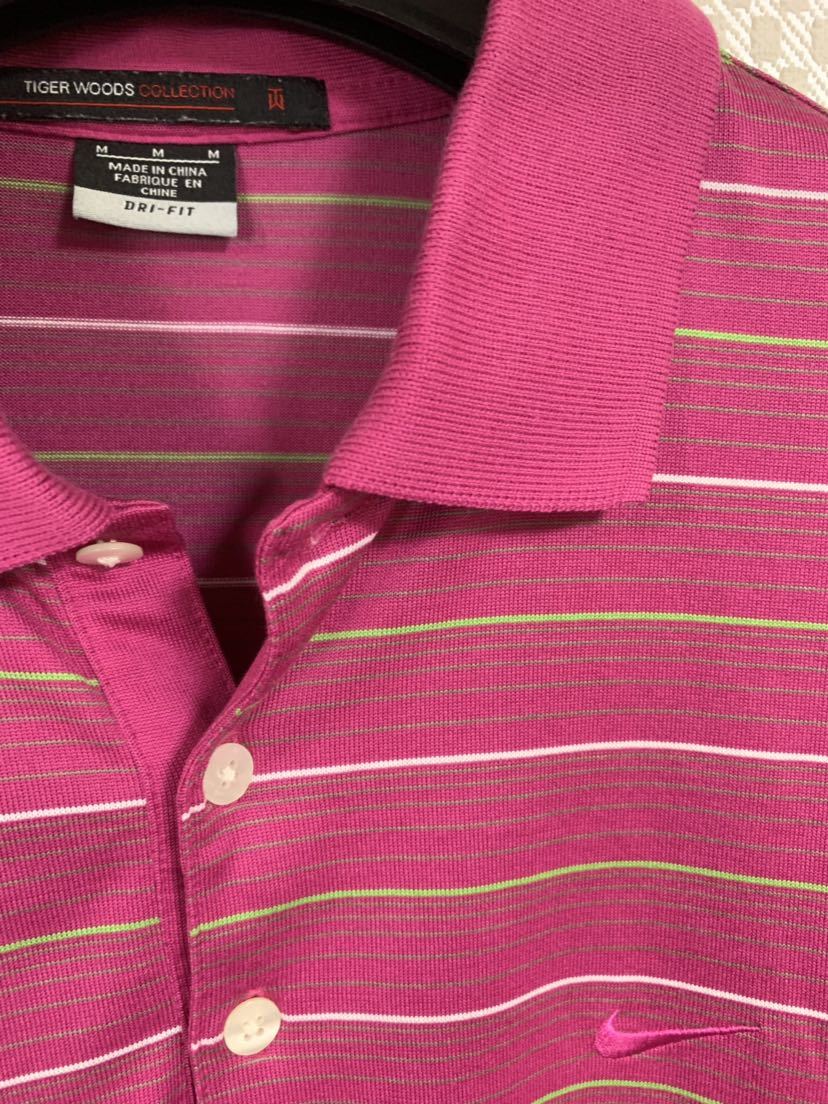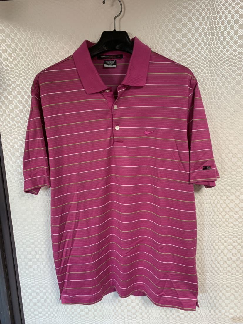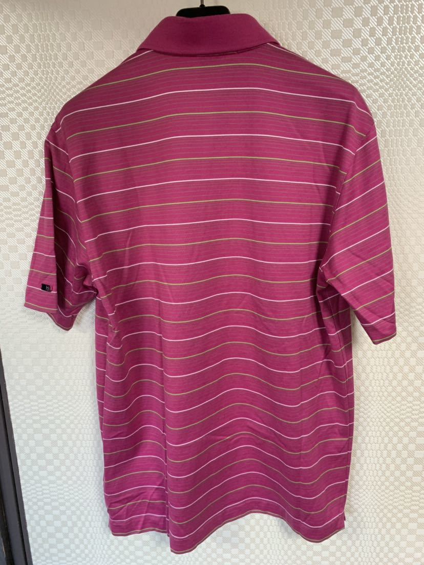 タイガーウッズの半袖ポロシャツです。サイズはM表記で平置き脇下身幅52着丈71肩幅46センチ位です。綺麗な状態ですよ。