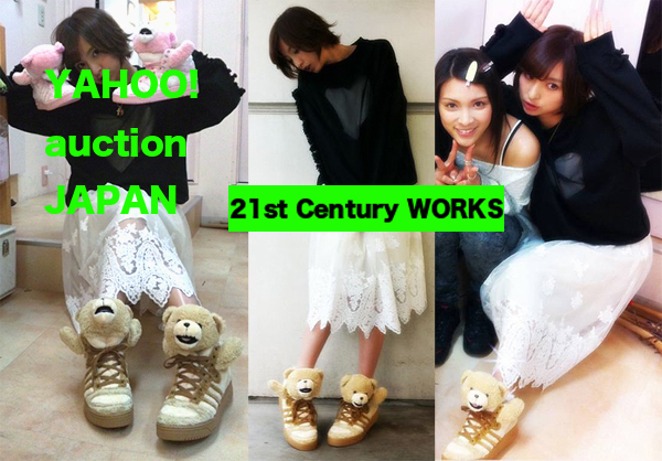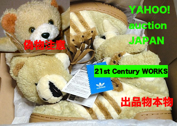(元箱/タグ付属)アディダス ジェレミースコットのクマスニーカーです。多数の著名人も着用しているアイテムでテディーベアをモチーフとした1stモデルになります。表記サイズはJP24.5cmで国内正規品タグ(画像3)が付いた本物ですのでご安心ください。現在海外では本物が500~1000ドルしますし2013SSの迷彩柄ベアーからパーツや素材、フォルムが変わってしまい目つきが鋭く可愛くなくなってしまったので初期モデルをお探しだった方には朗報だと思います。メンズサイズは完売までひと月くらいかかりましたがレディースサイズは行列ができて即日完売しておりましたので買い逃された方にもお薦めです。偽物も多いため画像3左上にヤフオクでよく見かける偽物でパーツが違うため目つきが鋭く、耳や鼻の色も違い、手などの毛足が短い偽物画像を掲載しておきますので参考(その他ハチマキをした偽物等多数存在しますがその程度は判別が簡単ですので載せません。)にして下さい。製品の特性上ノークレーム、ノーリターンで。都内からの発送になります。一週間以内で取引完了して頂きますので予めご了承下さい。発送日はヤフオクのシステム変更で支払い方法がかんたん決済のみとなりましたのでヤフー審査通過後(手続き後ではありません。)の発送になります。