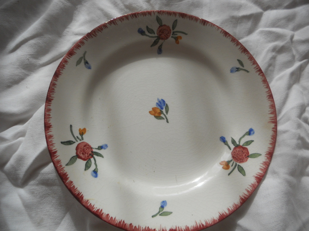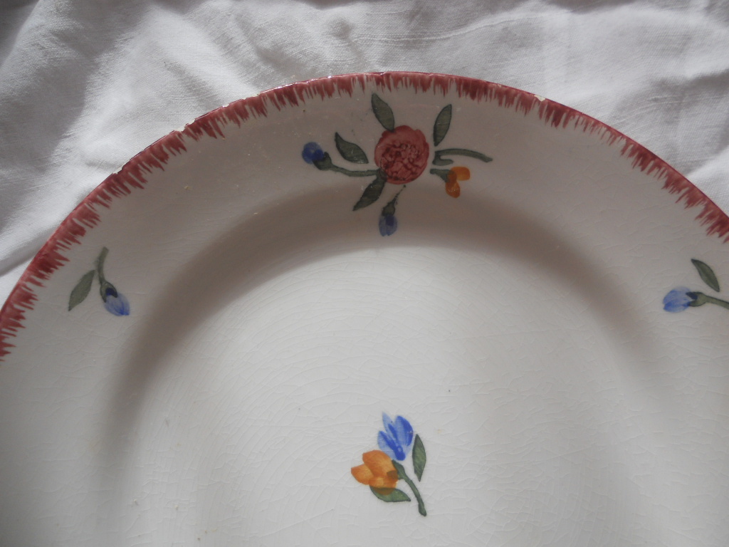 フランスアンティーク*ディゴワンサルゴミンヌ*プレート*ピンクレッド花柄*雅姫、皿*