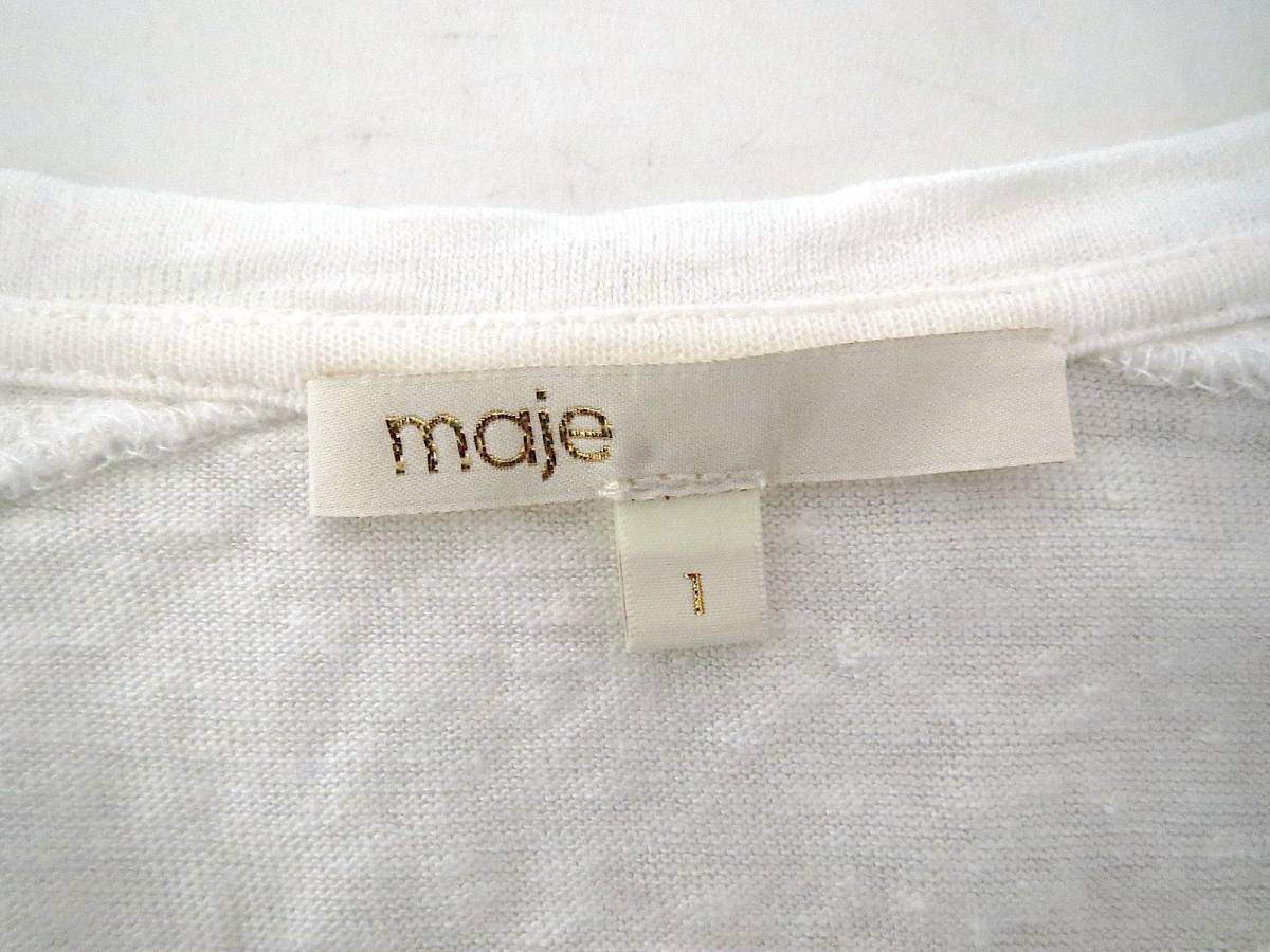 二点落札で送料無料! B048 maje マージュ 麻 100% 白 半袖 Tシャツ 1 レディース トップス S相当 リネン ホワイト B