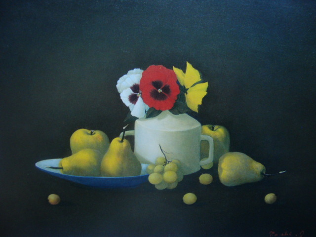 岡田肇彦【花のある風景】希少画集画、状態良好、新品高級額装付、送料無料、洋画 油彩 風景